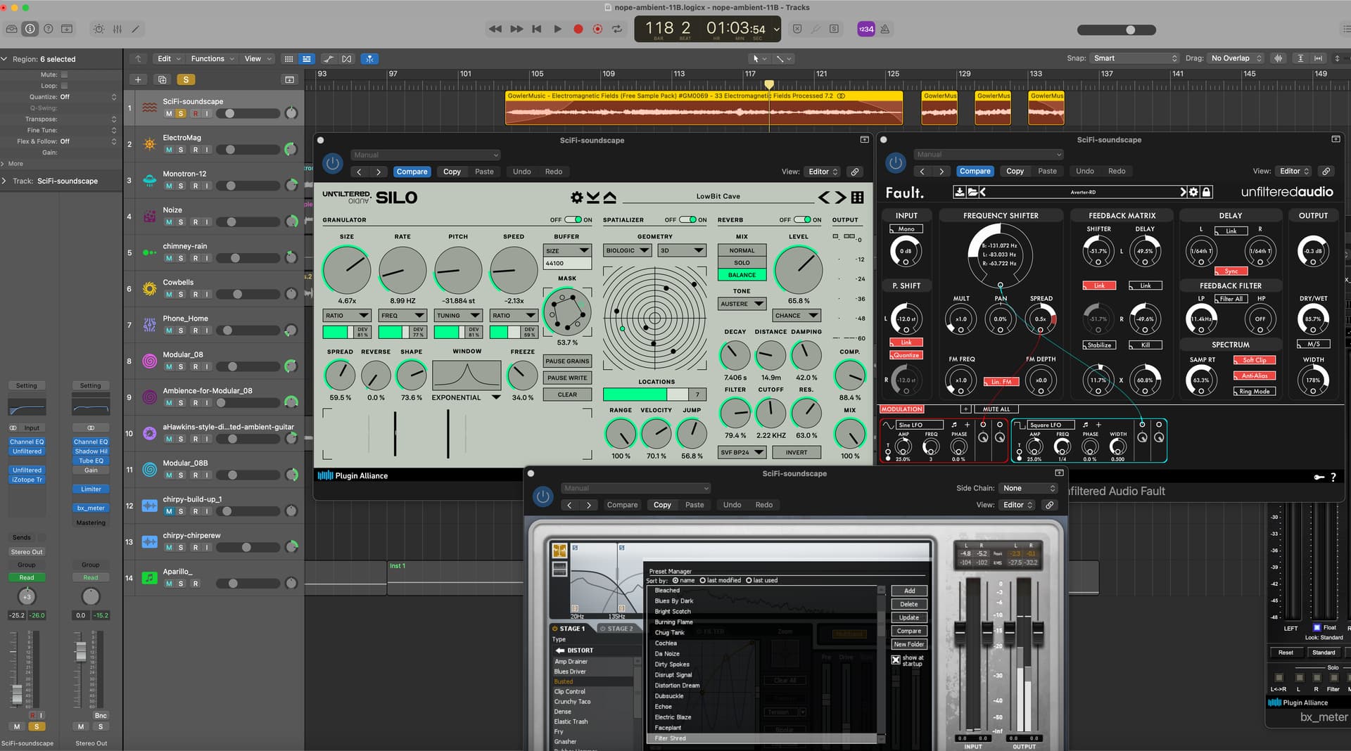 Hey @Artificer, you’re welcome! Most of the FX I use come from within Logic or purchased from Unfiltered Audio. I think I have everything except “Lion” and the drum machine … which looks super like it would be very cool! Lion I don’t need and the beat machine is too expensive for me. All the ones I have from them were purchased from Plugin Alliance, which often has big sales on stuff. Most of the other outside plugins I use (like the iZotope Trash 2) were free downloads.