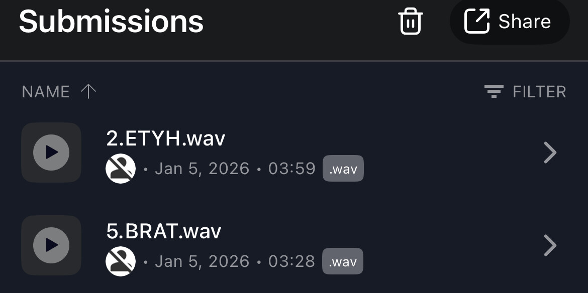 Mine’s tagged, although it does have a similar 4-letter uppercase name. People seem really good at spoofing my weirdness lately, but I wonder why they didn’t just leave an artist name.