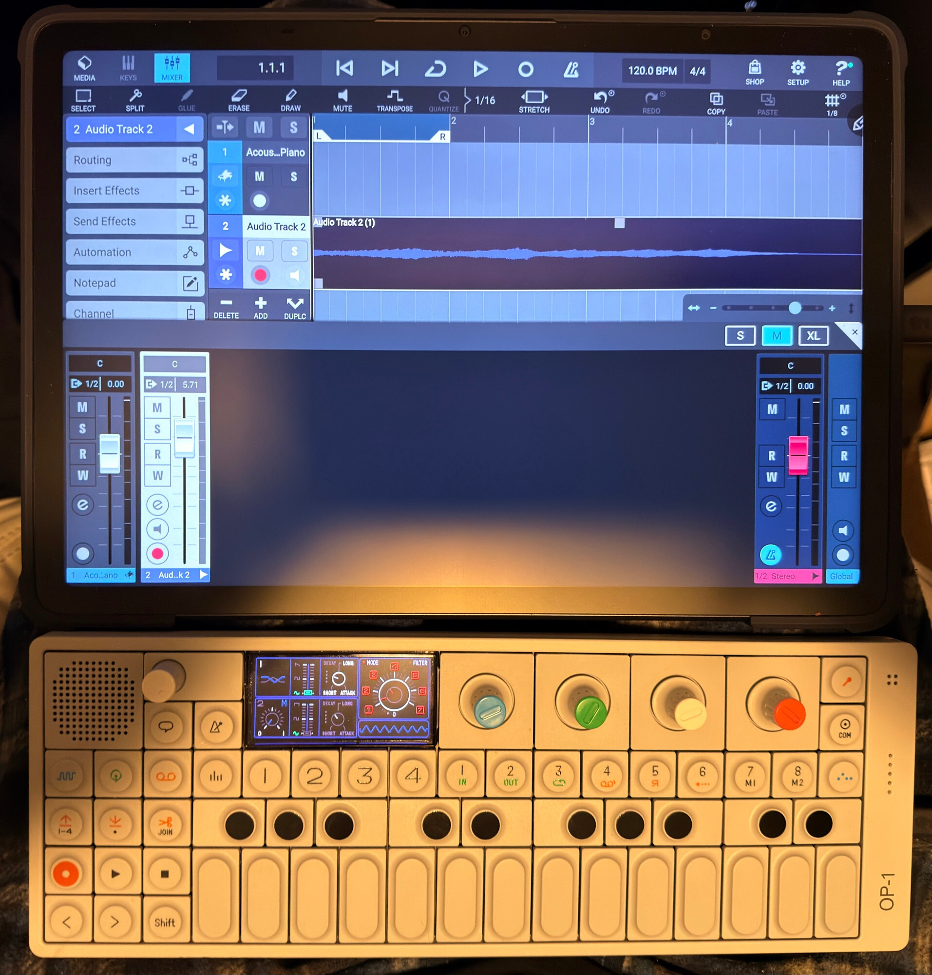 this was a fun discovery: 2021 saw USB audio added to the OP-1, and so all I needed was a USB cable to record into Cubasis 3. Which exports as DAWProject making such things able to be opened in a few DAWs afterward (Bitwig, Studio One, Cubase, and REAPER with a converter program by Jürgen Mossgraßer).