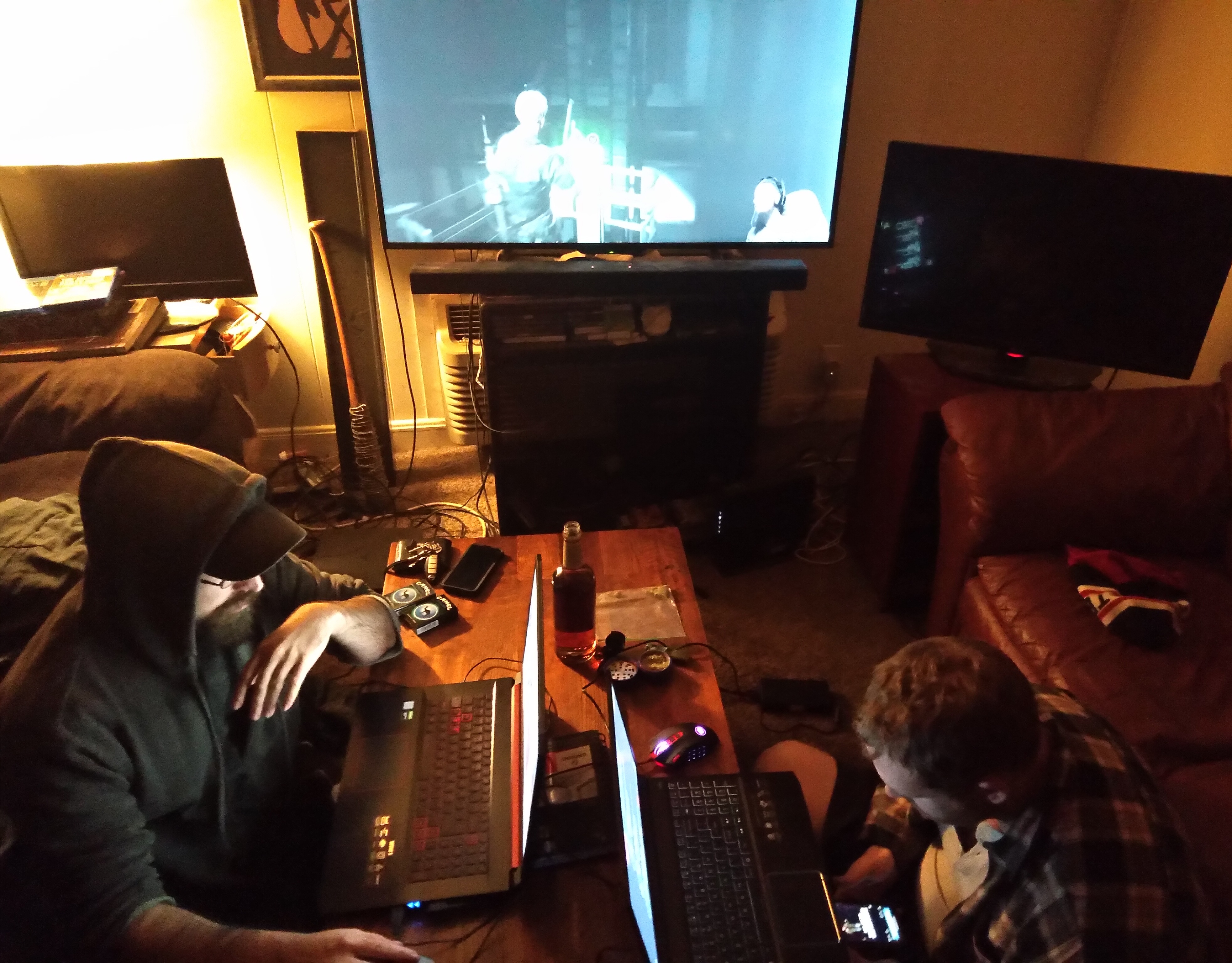 How I spent my dorky Halloween with two dorky friends (I ended up playing Doom Eternal on the big TV, just so we could have three different games going at the same time.):
