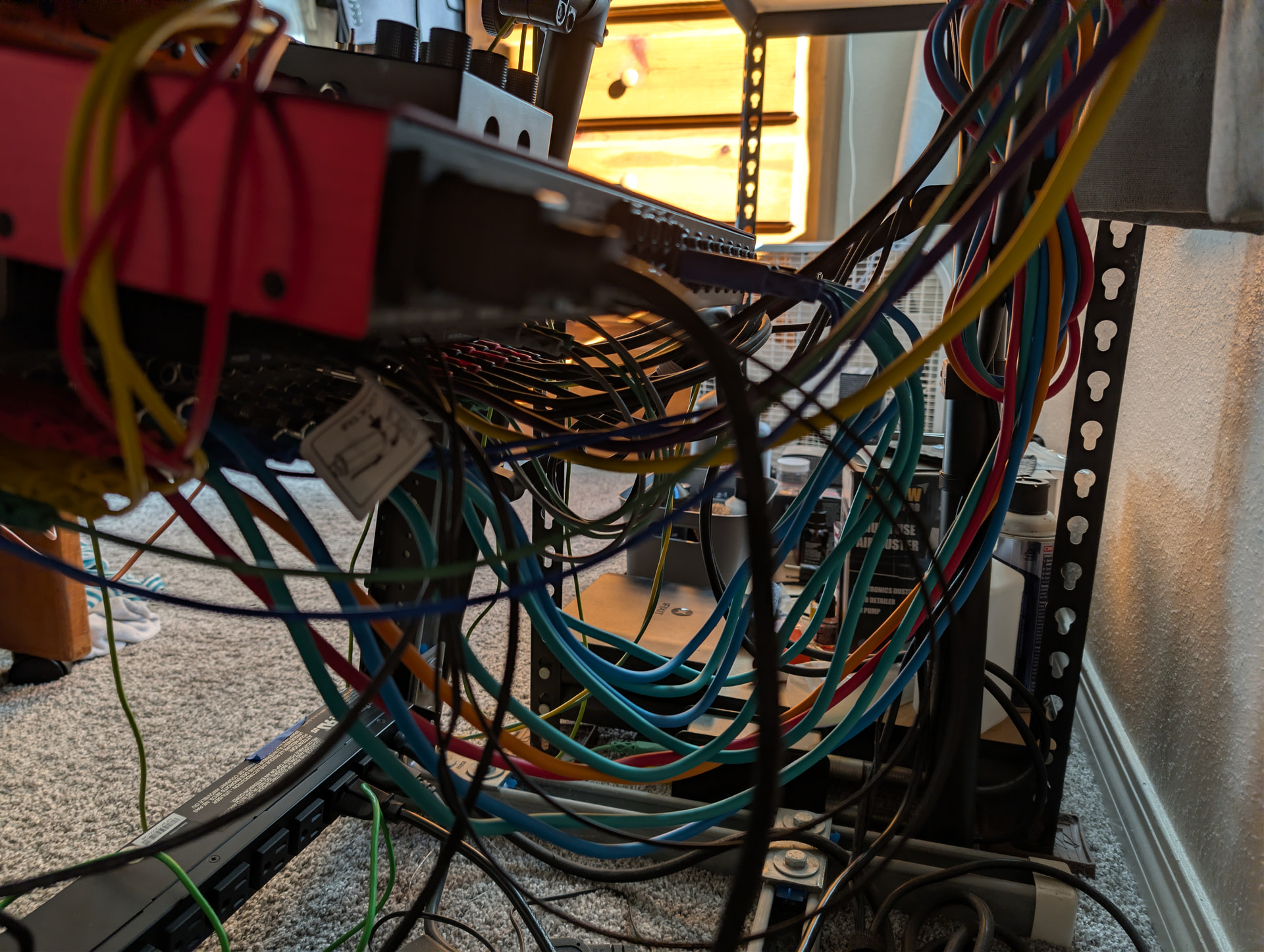 I’ve been there and done that. Now I obsess over cable management to both help me keep track of what is what (got to pick up a custom label for my patchbay to help with that) and to mitigate noise.