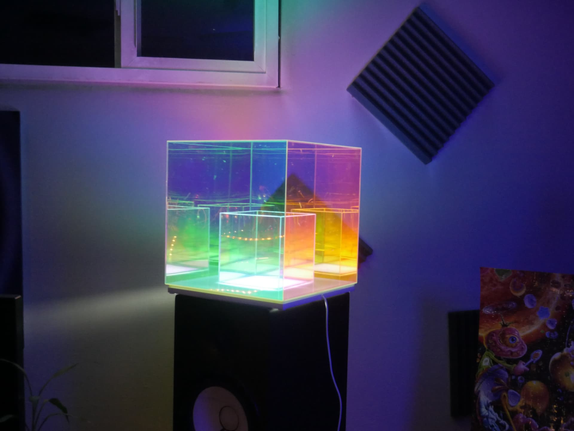 The cube in the first picture came damaged and scuffed, so I am sending back for a new one that should look better but this is pretty much the final touches. Finally got both racks of gear up and running, need a few midi cables but thats about it, maybe some more aesthetic stuff down the road
