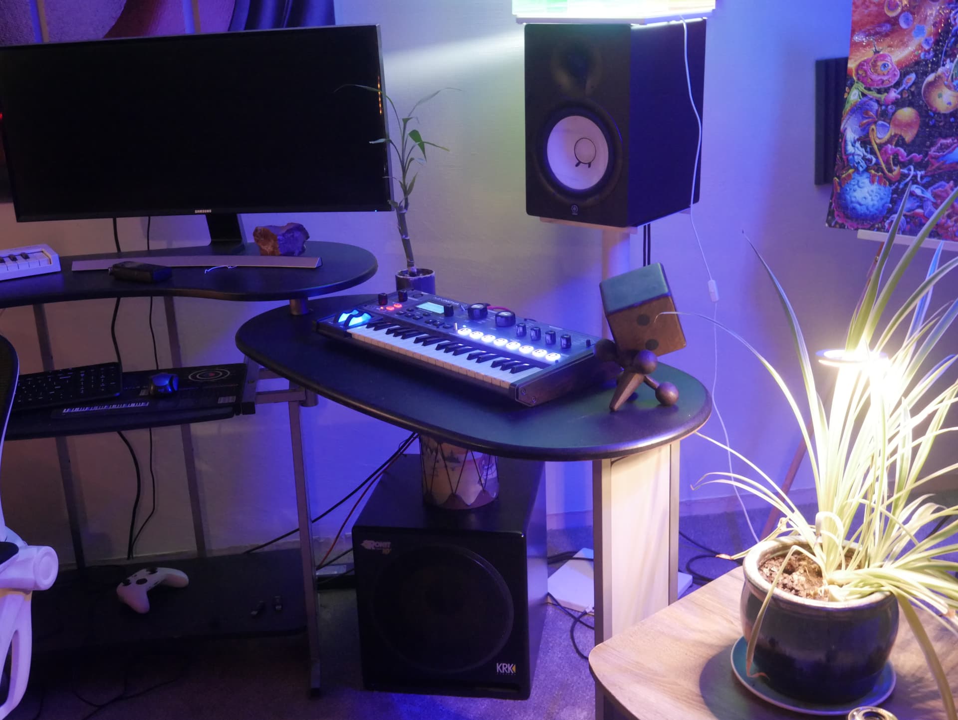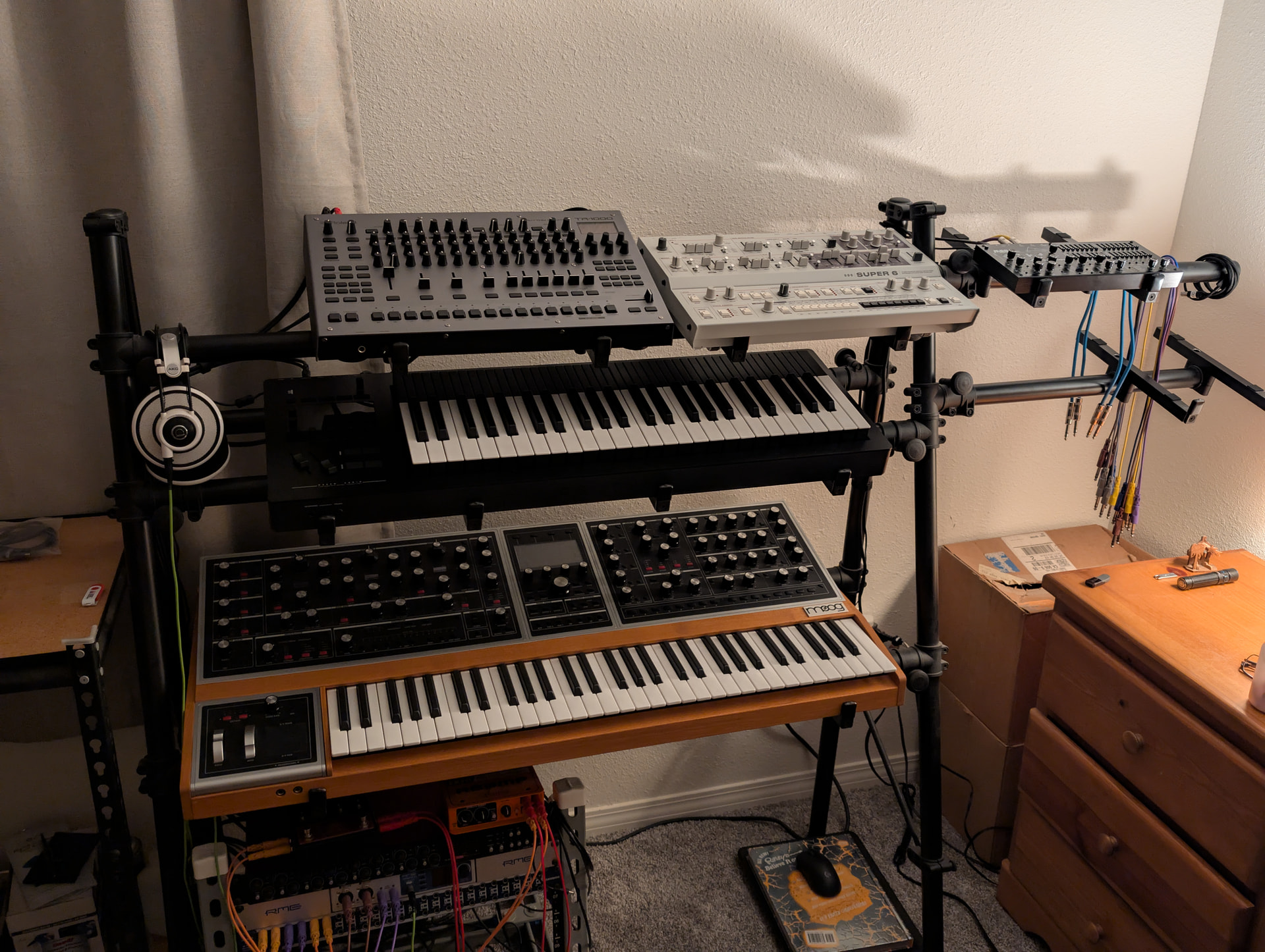 That’s a nice and tidy setup! Looks like a great spot to do some music. Makes me embarrassed for my sprawling mess of shit lol.
