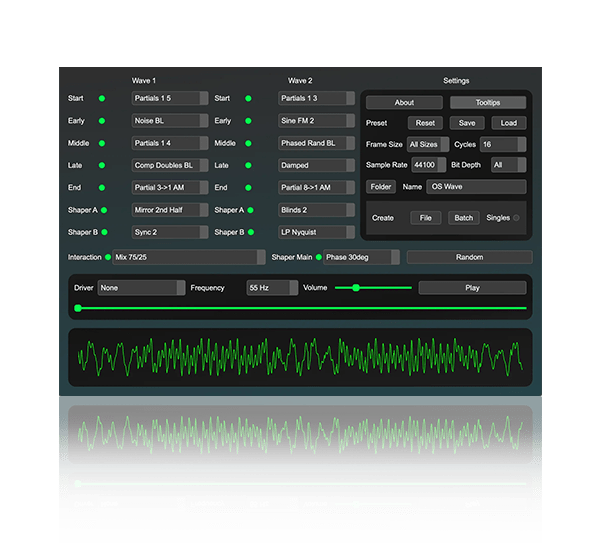 To move between the two, for each 64 steps of your loop you read the value at both wave 1 and wave 2 and interpolate between them, scaled by where you are in-between (ie the midway point is just 0.5), basic linear interpolation. The math ain’t hard but gen makes it dumb simple with the mix operator which does linear interp for you. Map a knob to the position/contribution and you can dial in where you are between them.