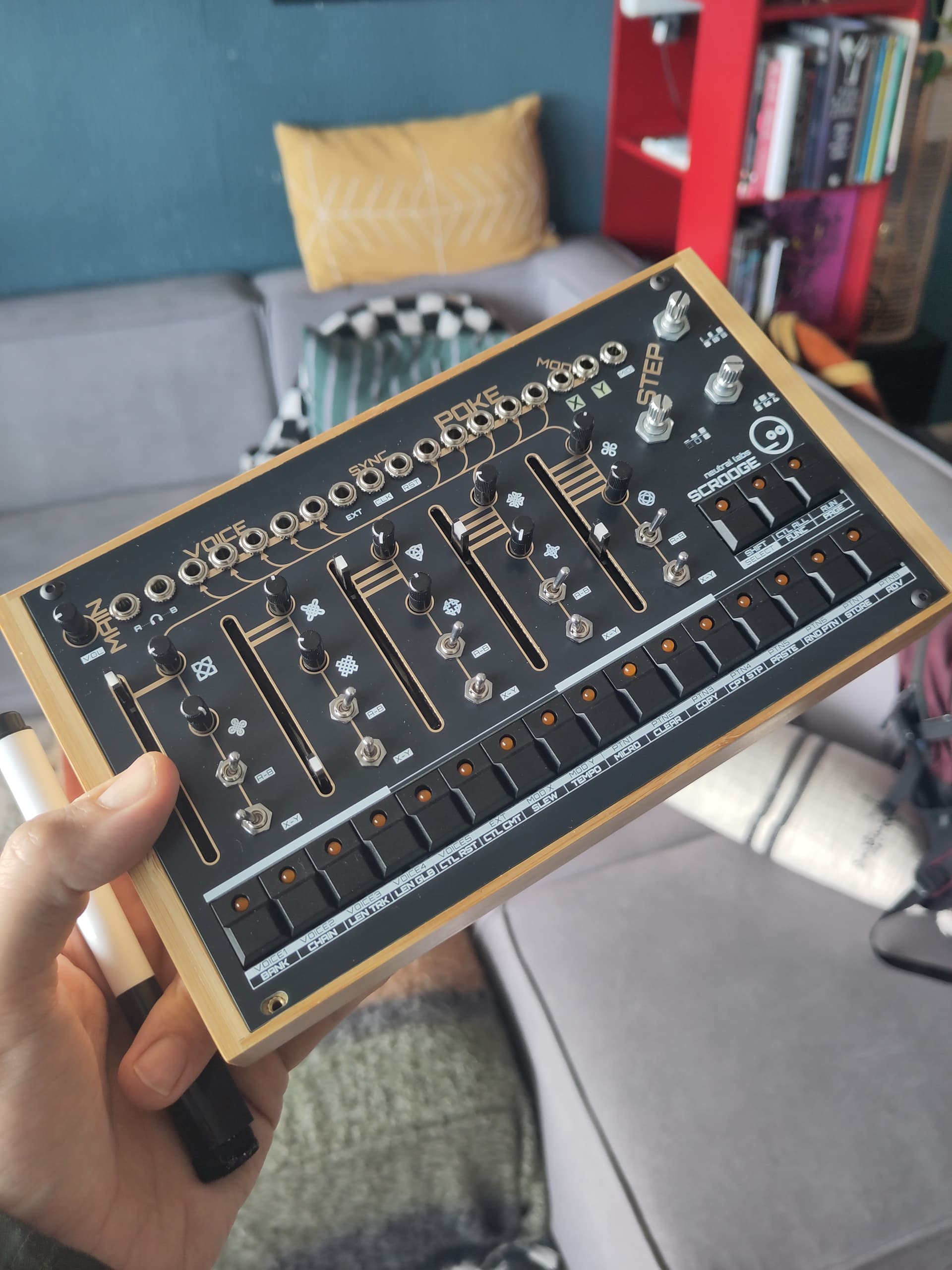 Got round to putting this kit together this week. Neutral Labs Scrooge, desktop version. It’s heaps of fun to use, real little inspiration machine. The build wasn’t too hard, all the SMD parts come pre-soldered. I only had to take it apart again once to re-solder a funky LED ![]()