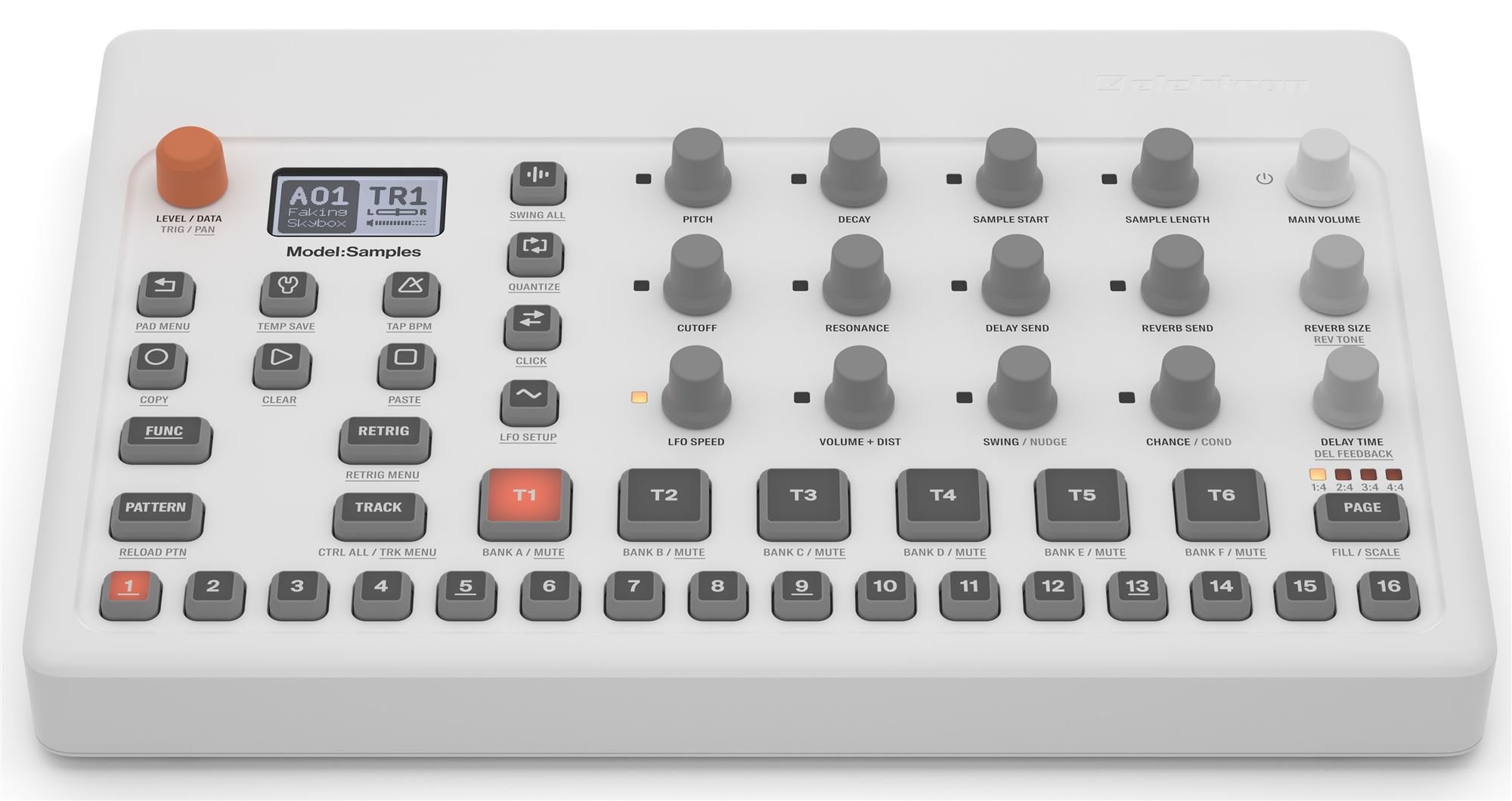 Each of the six sequencer tracks can output MIDI to control other machines. Now the Elektron method can empower any and all electronic music setups. At a mere 1.8lbs, Model:Samples lets you enjoy pro sound quality and sophisticated rhythm creation anywhere. Be ready when inspiration strikes.