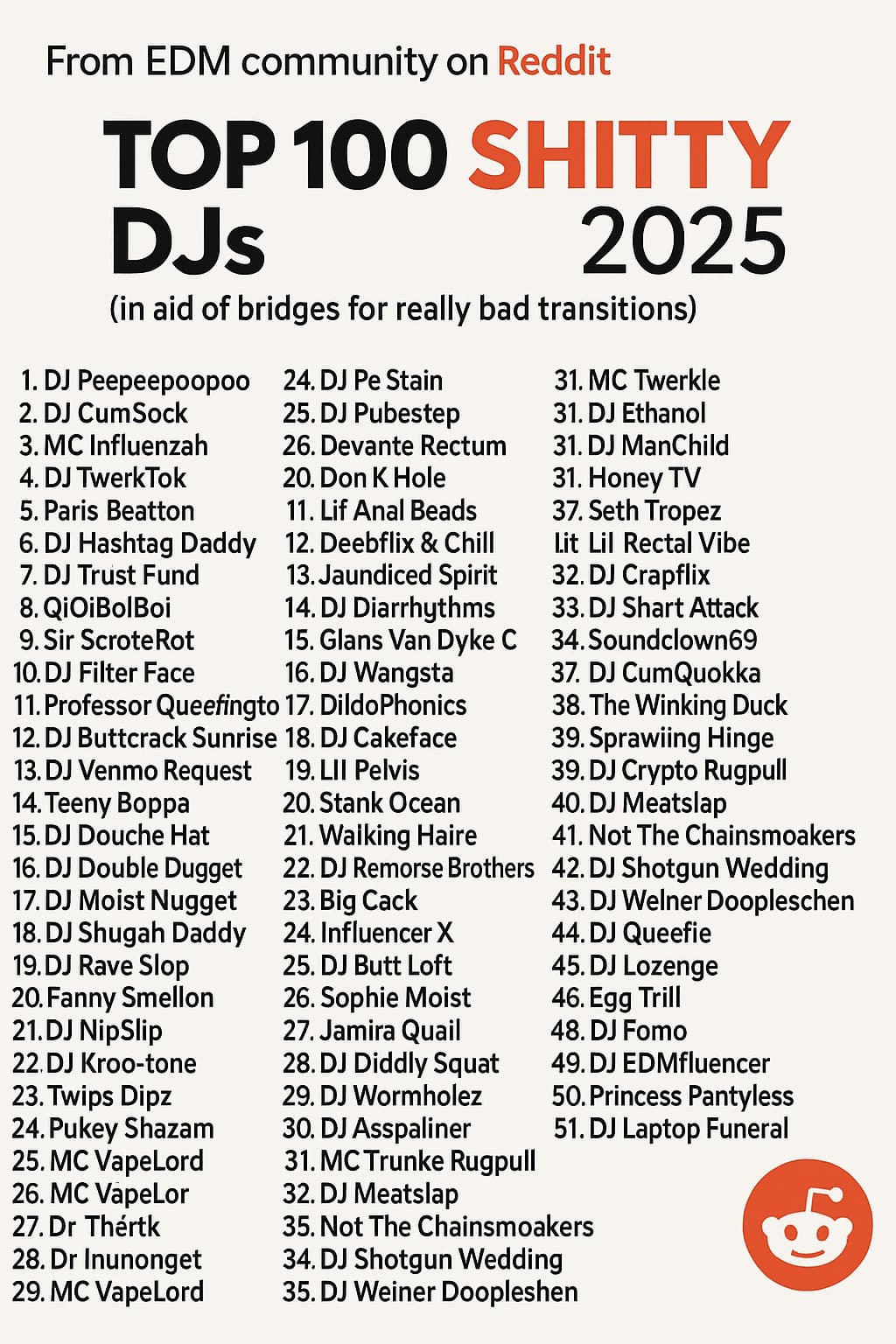 IDK man, DJ Shart Attack and DJ Laptop Funeral do sound pretty awesome ![]()