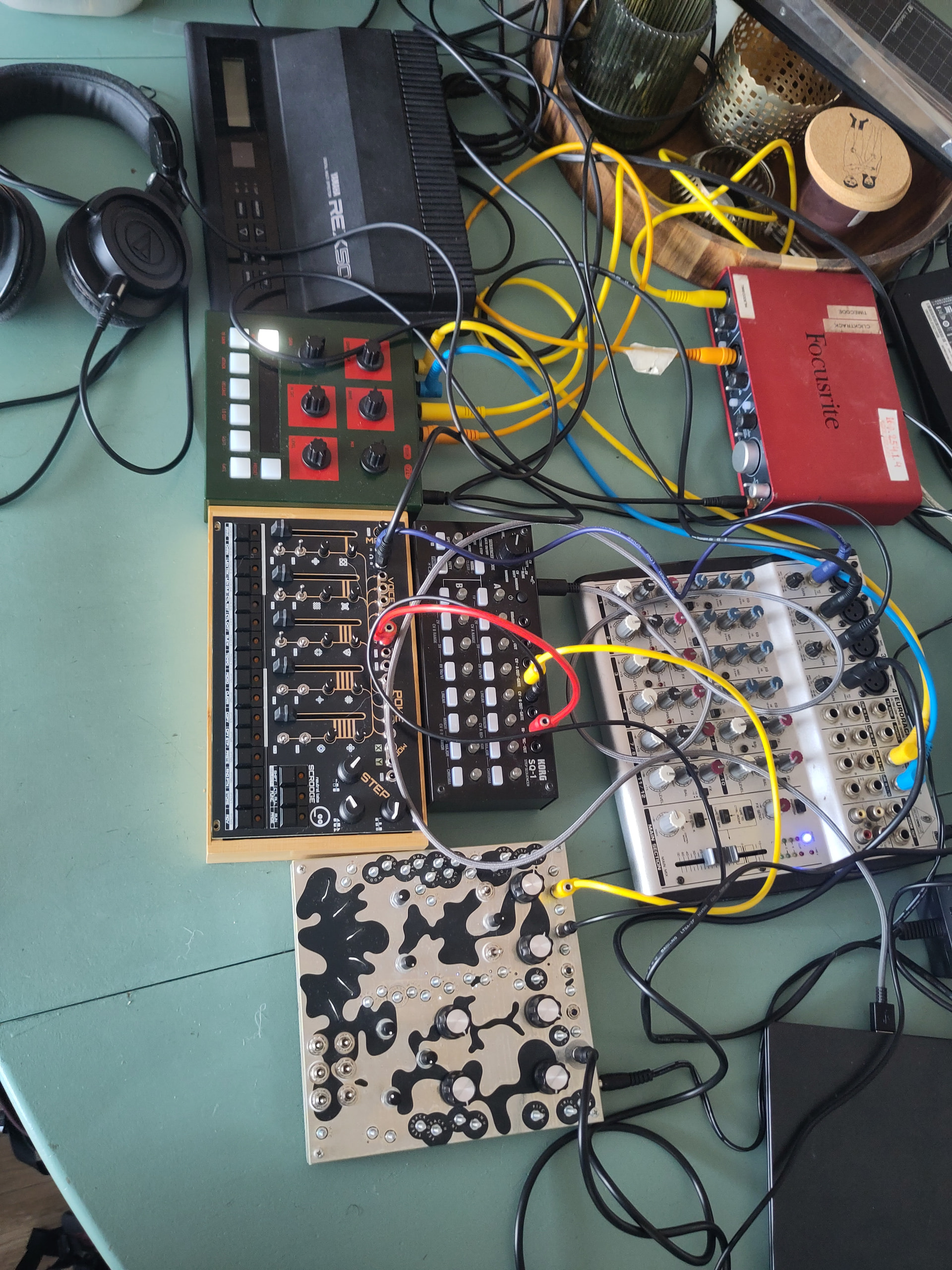 I spend a lot of time gathering sound from all sorts of places, be it field recordings or electrostatic noises (using Soma Ether for example), and I’ll do experimental setups using hardware. I’ll just experiment and try different combinations until I find something that excites me, and then record freeform sessions of noisemaking. Recently I’ve also been doing a bunch of experiments using Soundthread and Blockhead to get interesting textures and noises.